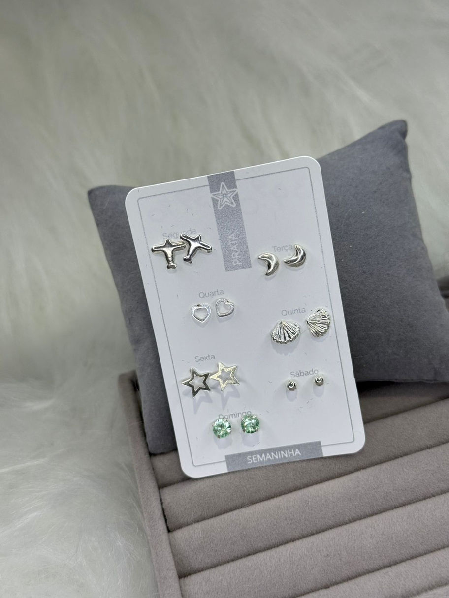 Brinco semaninha conchas contendo 6 pares na cartela um para cada dia da semana,prata 925.