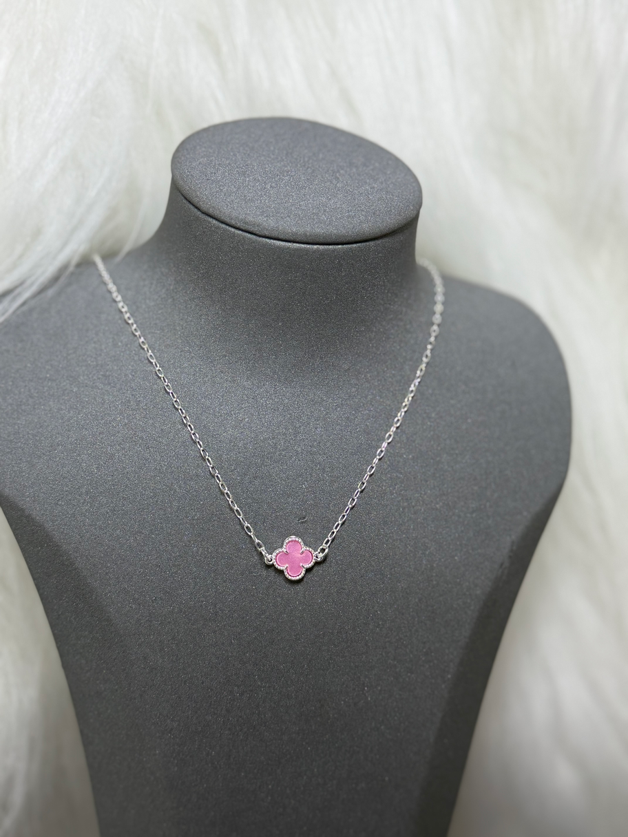 Colar de trevo único rosa